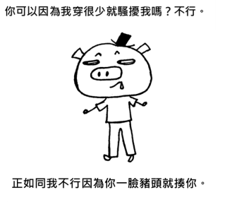也許你會問:「可是我說的是事實阿。喝酒本來就很危險,容易讓人有機可乘。」即使你的本意並非責怪受害者而是為了幫助受害者避免悲劇發生,這些話的隱含的意思是「受害者自己害自己陷入危機」「受害者本來可以避免發生這種事」「受害者自己不小心,所以才會被性侵」然而,需要為悲劇負責的人不是受害者而是加害者,真正該譴責的是加害者而非受害者。任何人,無論在任何情境,都沒有權利傷害另外一個人。沒有任何人可以因為對方喝醉、裙子穿得短,而對對方性侵害;正如同我不行你因為長得一臉豬頭就揍你。檢討受害者的穿著、行為,正如同我檢討你沒有整型、為什麼要出門(所以活該被我揍)。